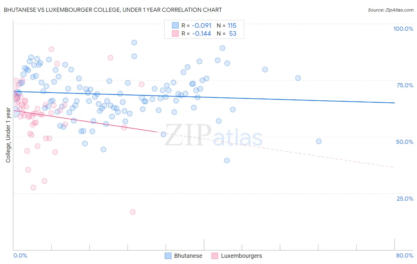 Bhutanese vs Luxembourger College, Under 1 year Correlation Chart