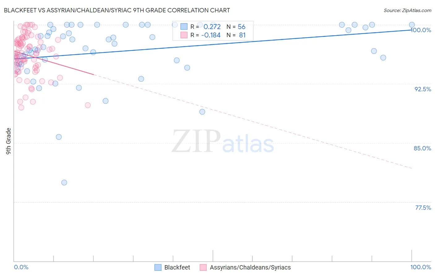 Blackfeet vs Assyrian/Chaldean/Syriac 9th Grade Correlation Chart