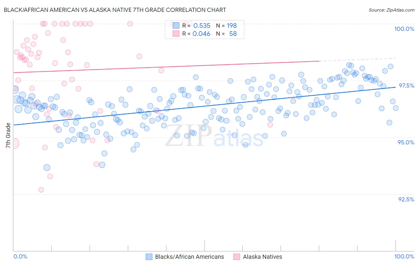 Black/African American vs Alaska Native 7th Grade Correlation Chart