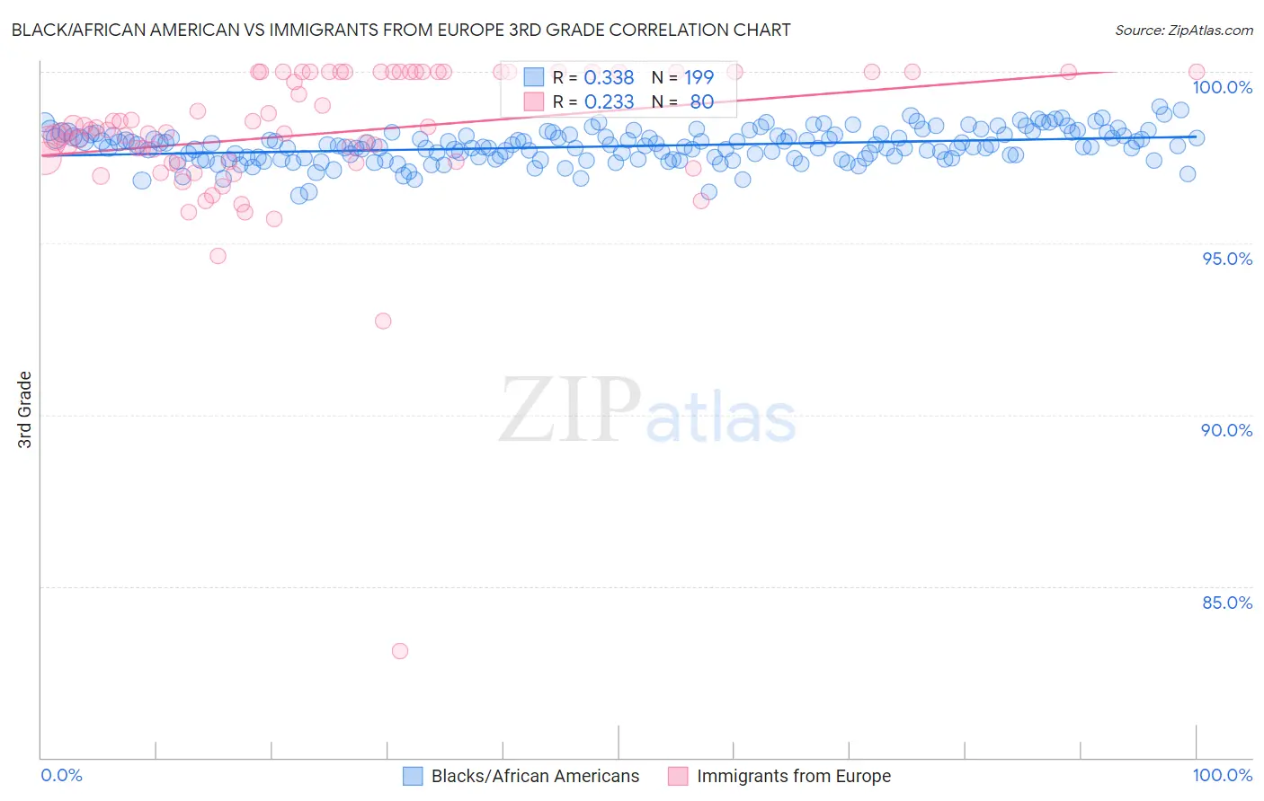 Black/African American vs Immigrants from Europe 3rd Grade Correlation Chart