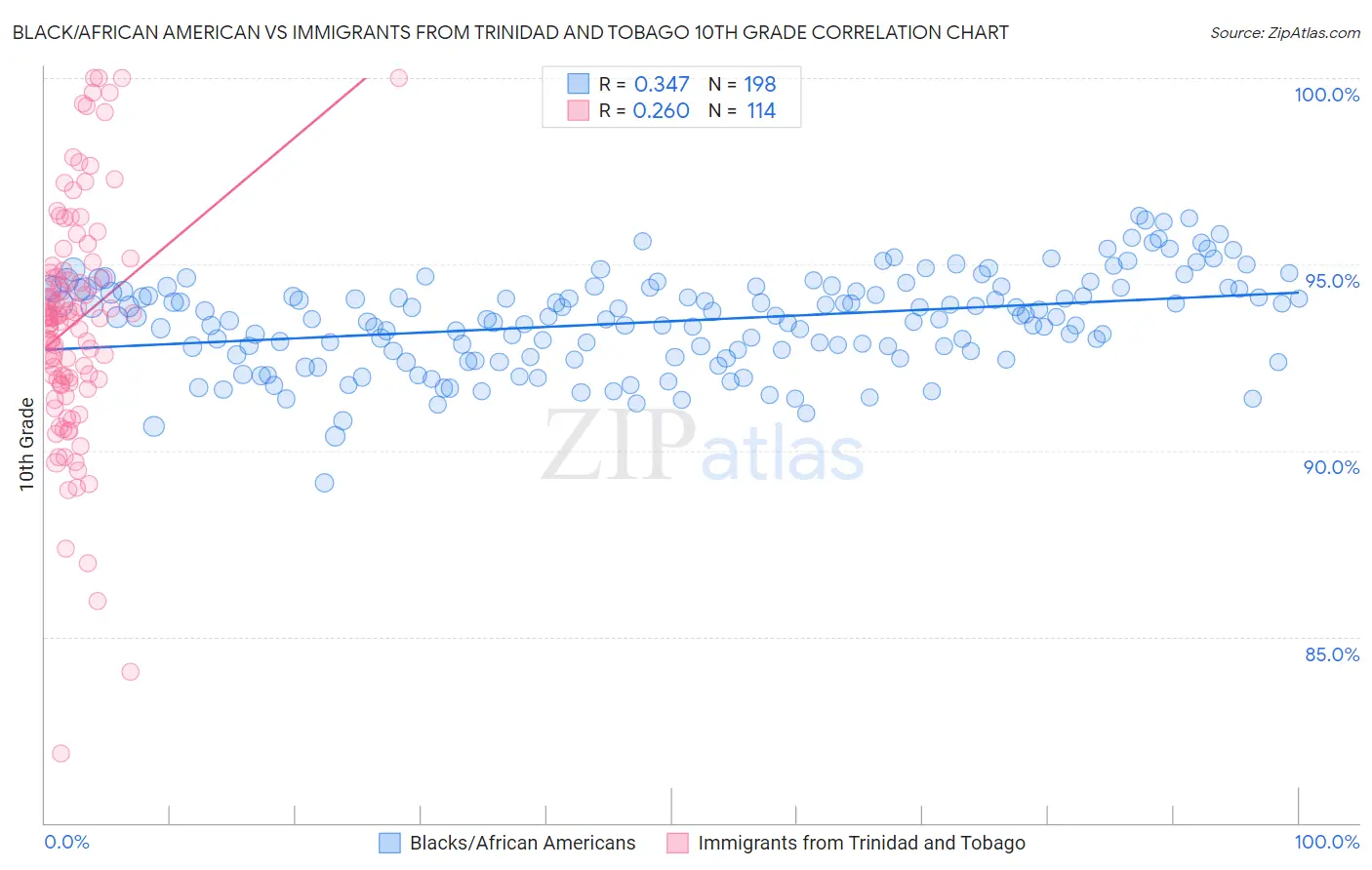 Black/African American vs Immigrants from Trinidad and Tobago 10th Grade Correlation Chart