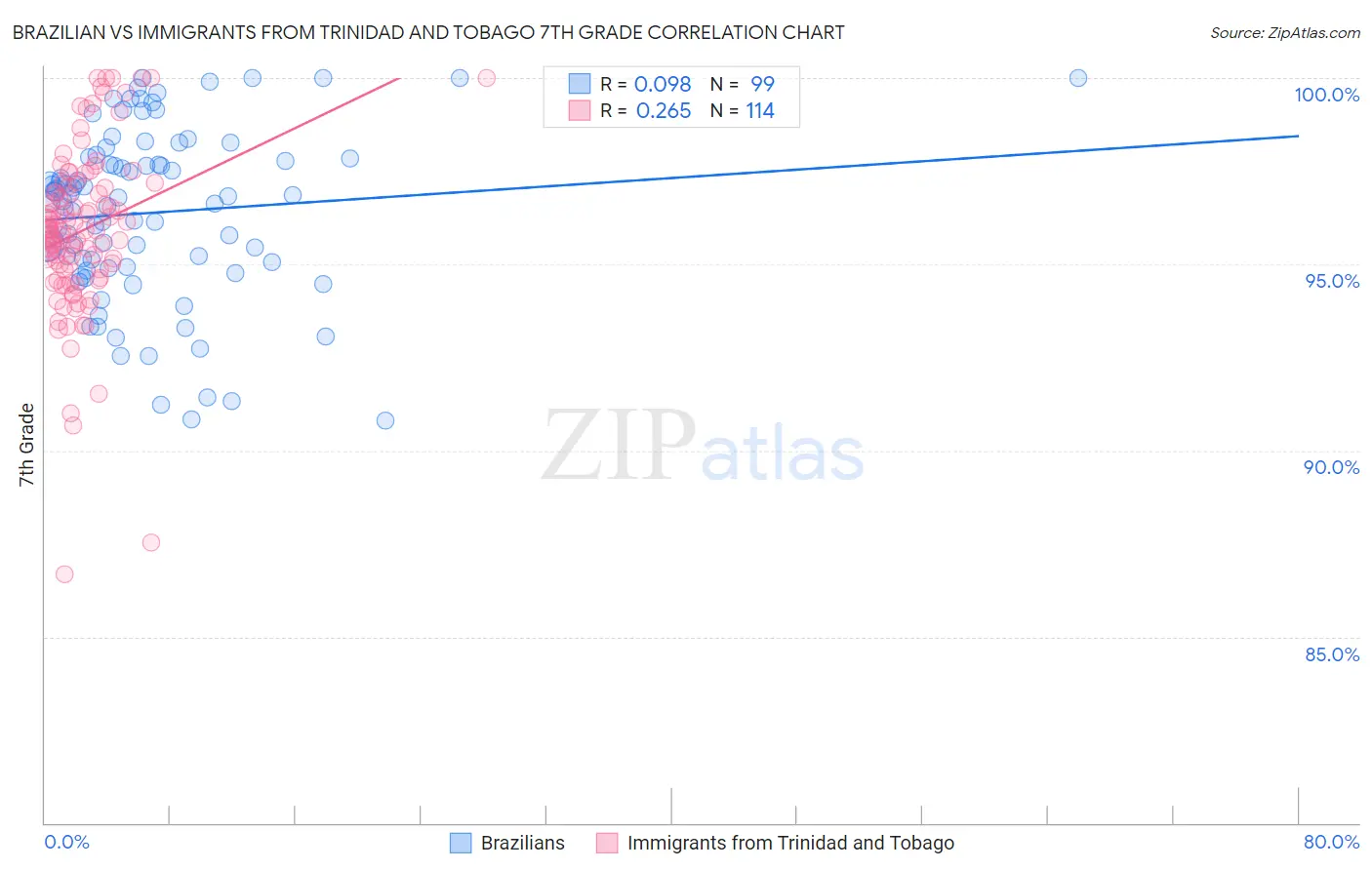 Brazilian vs Immigrants from Trinidad and Tobago 7th Grade Correlation Chart
