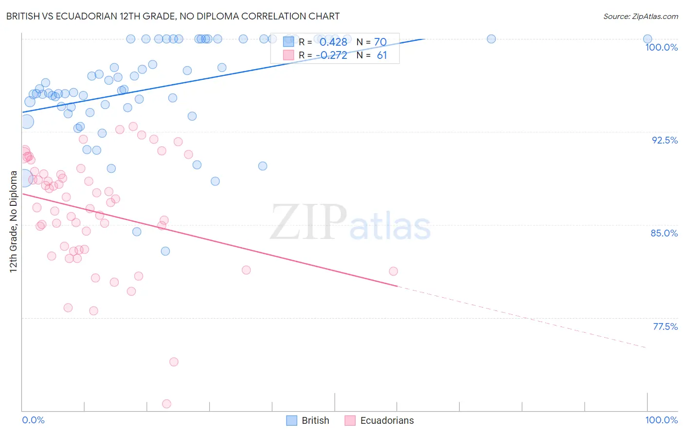 British vs Ecuadorian 12th Grade, No Diploma Correlation Chart