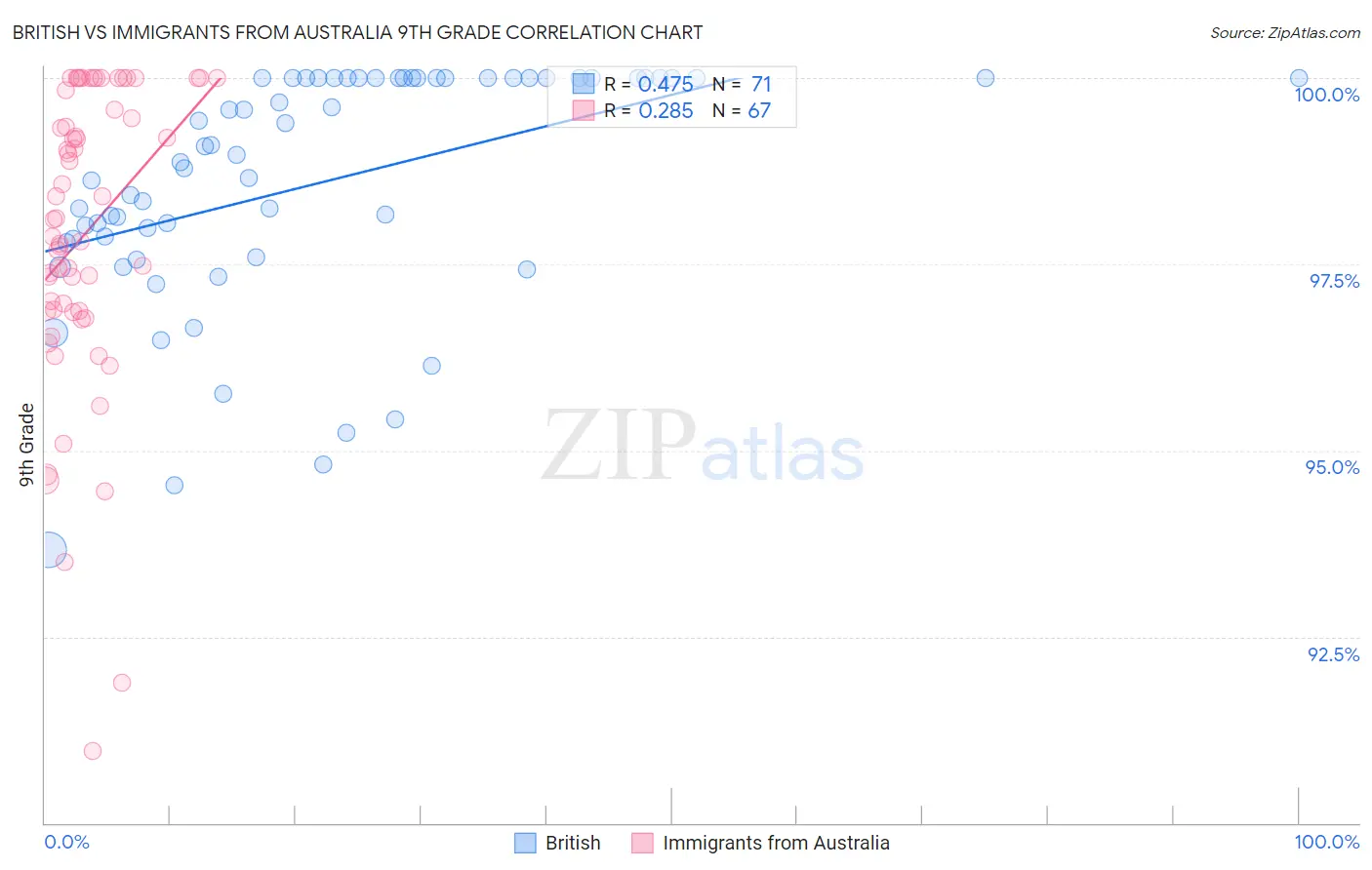 British vs Immigrants from Australia 9th Grade Correlation Chart