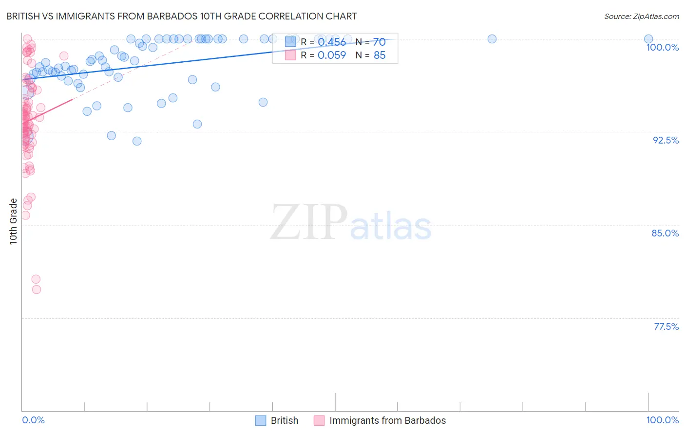 British vs Immigrants from Barbados 10th Grade Correlation Chart