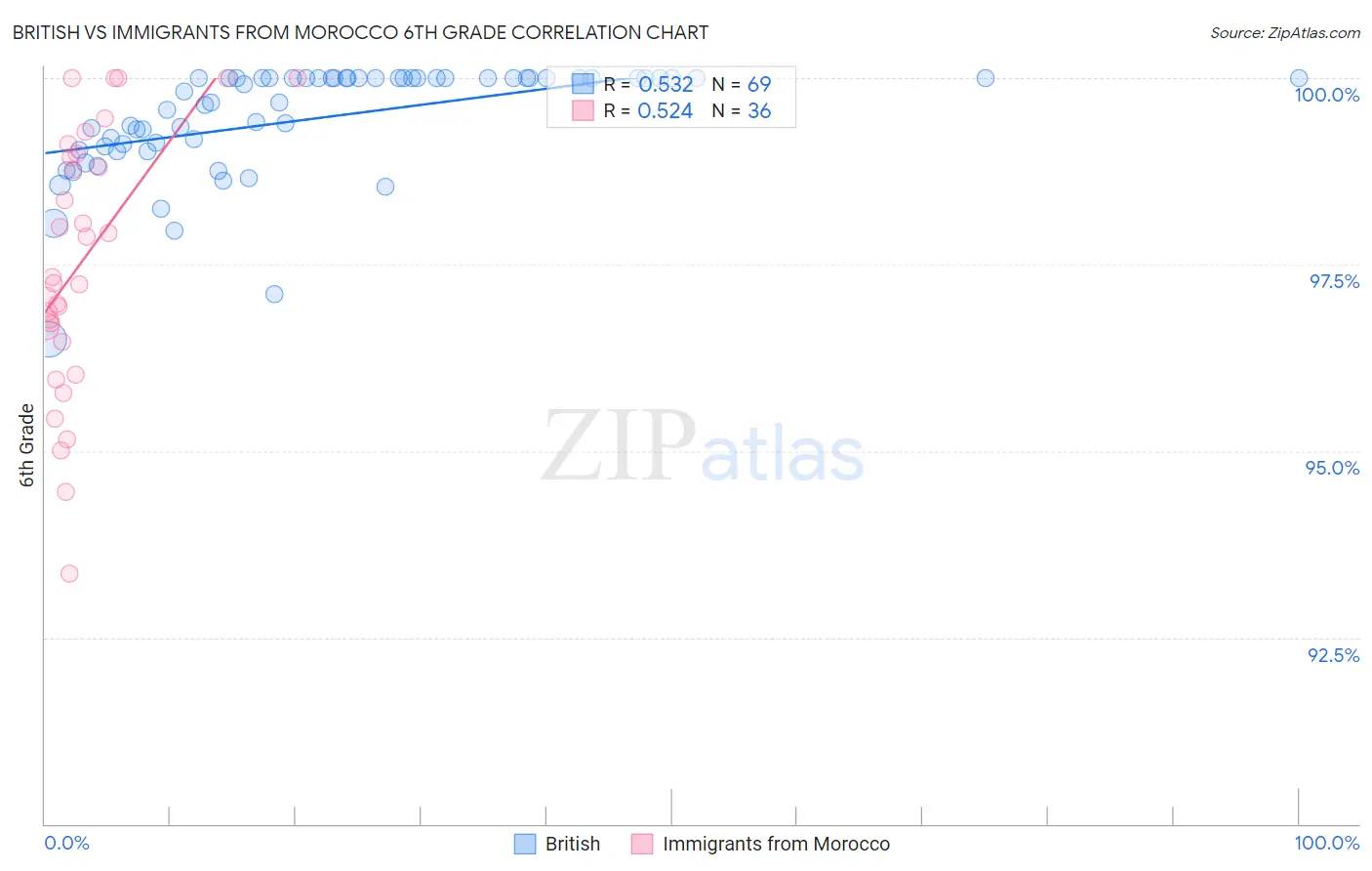British vs Immigrants from Morocco 6th Grade Correlation Chart