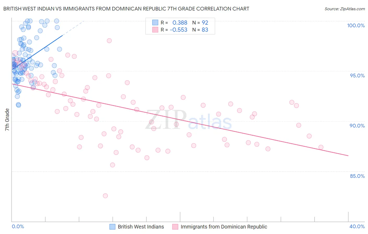 British West Indian vs Immigrants from Dominican Republic 7th Grade Correlation Chart