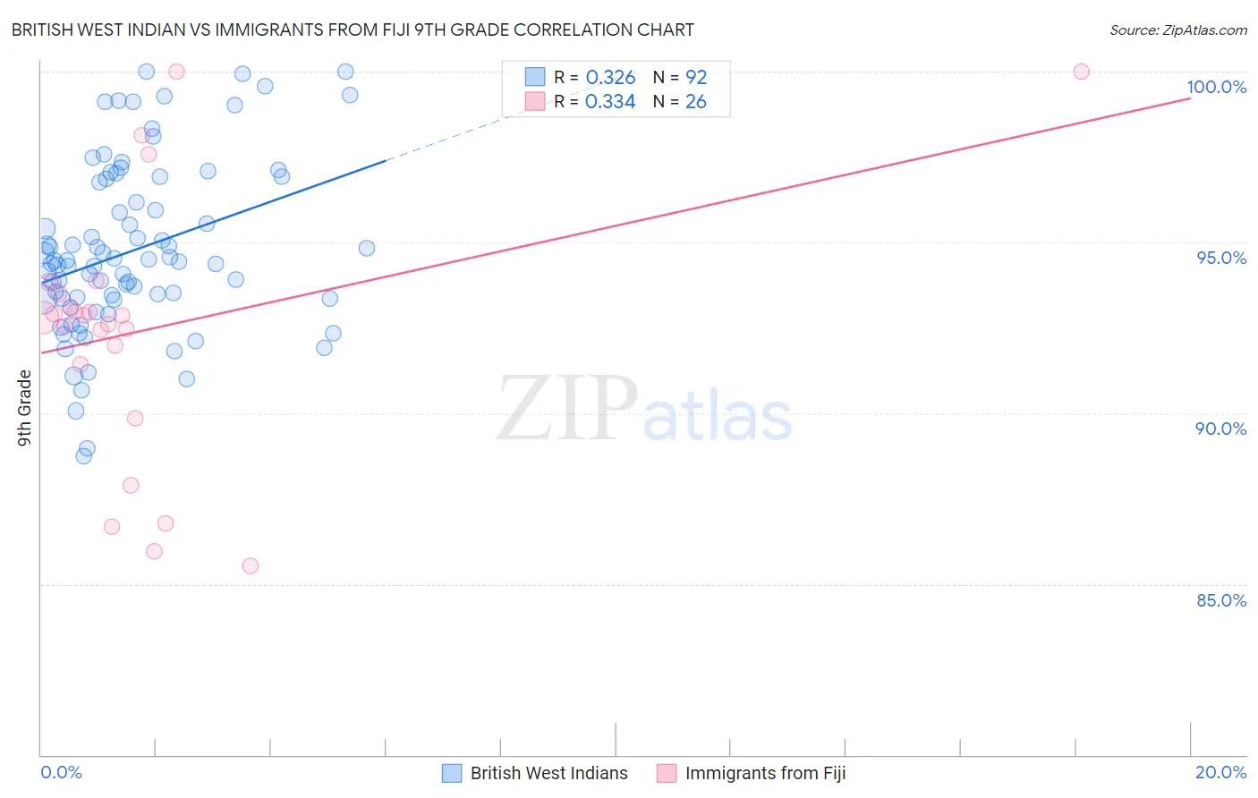 British West Indian vs Immigrants from Fiji 9th Grade Correlation Chart