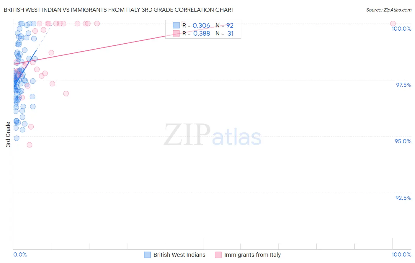British West Indian vs Immigrants from Italy 3rd Grade Correlation Chart
