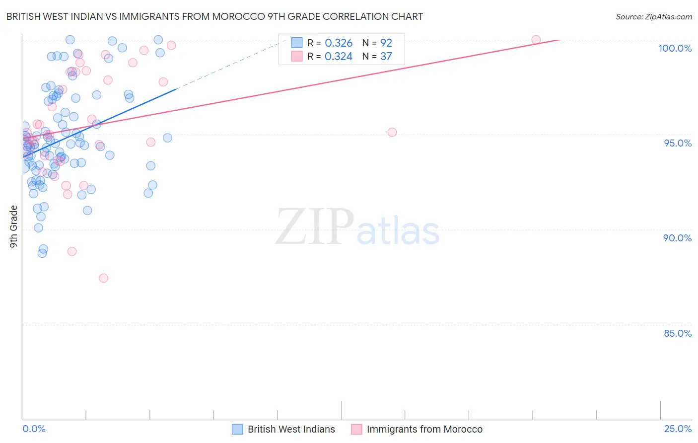 British West Indian vs Immigrants from Morocco 9th Grade Correlation Chart