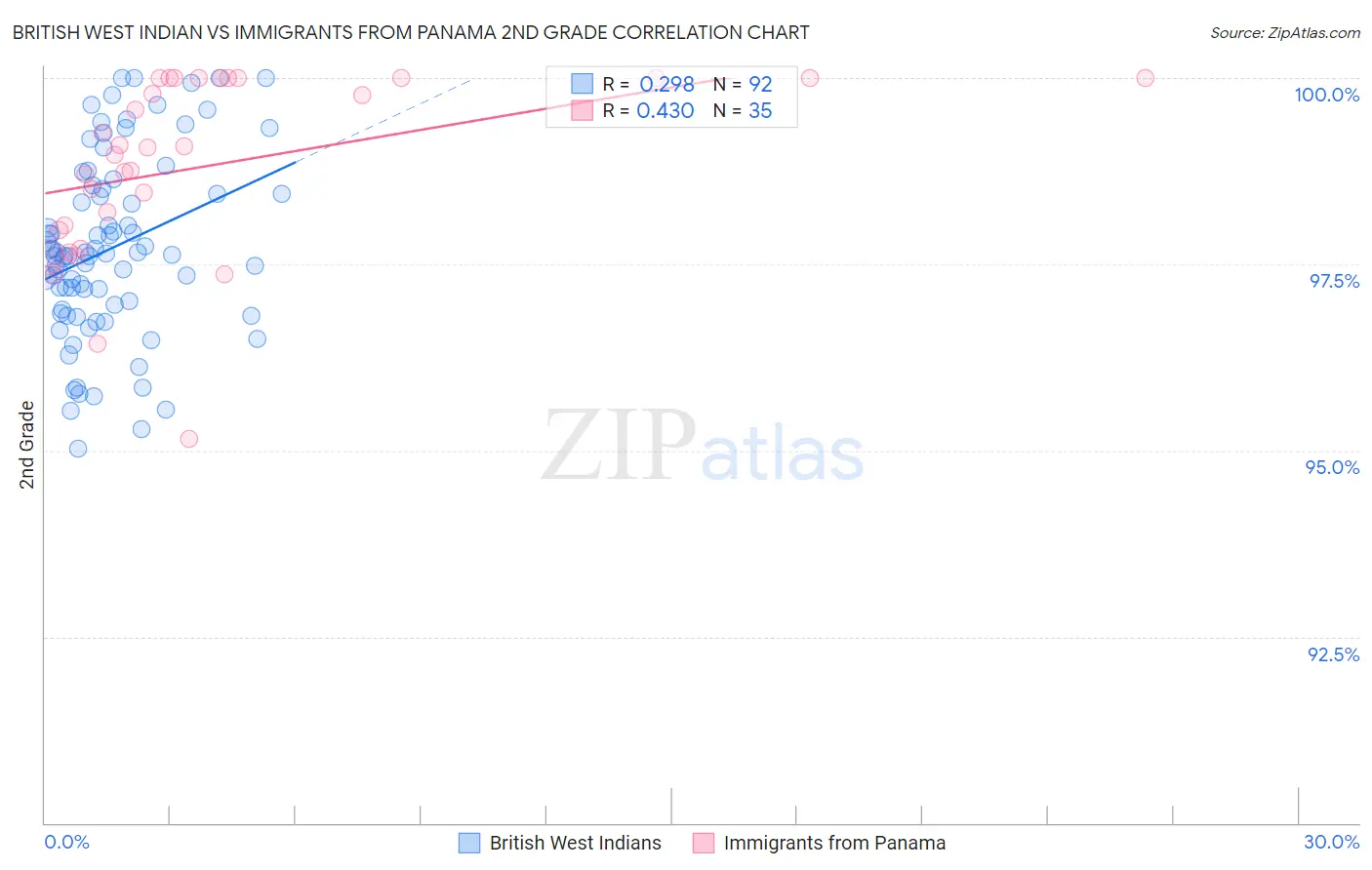British West Indian vs Immigrants from Panama 2nd Grade Correlation Chart