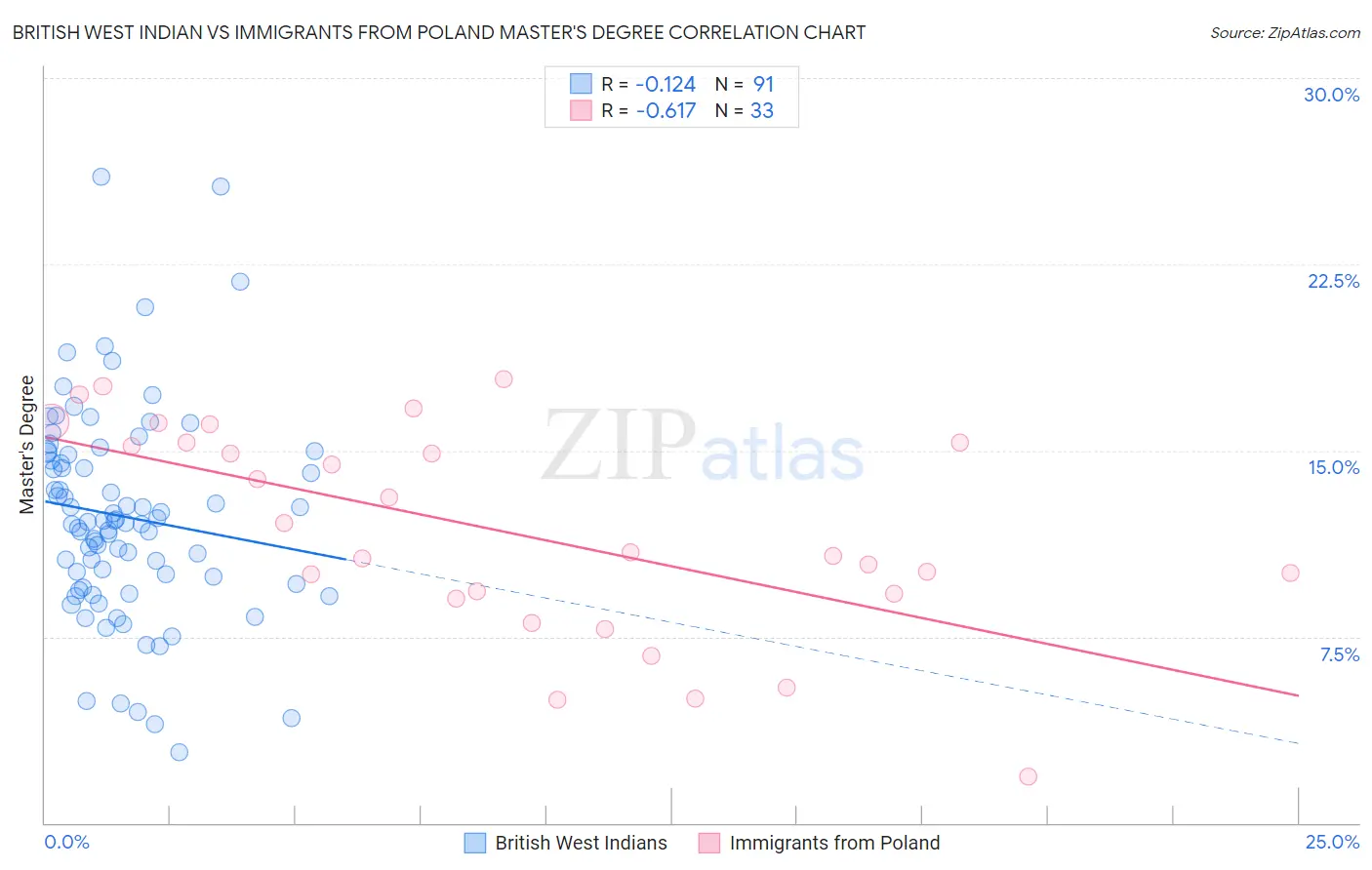 British West Indian vs Immigrants from Poland Master's Degree Correlation Chart