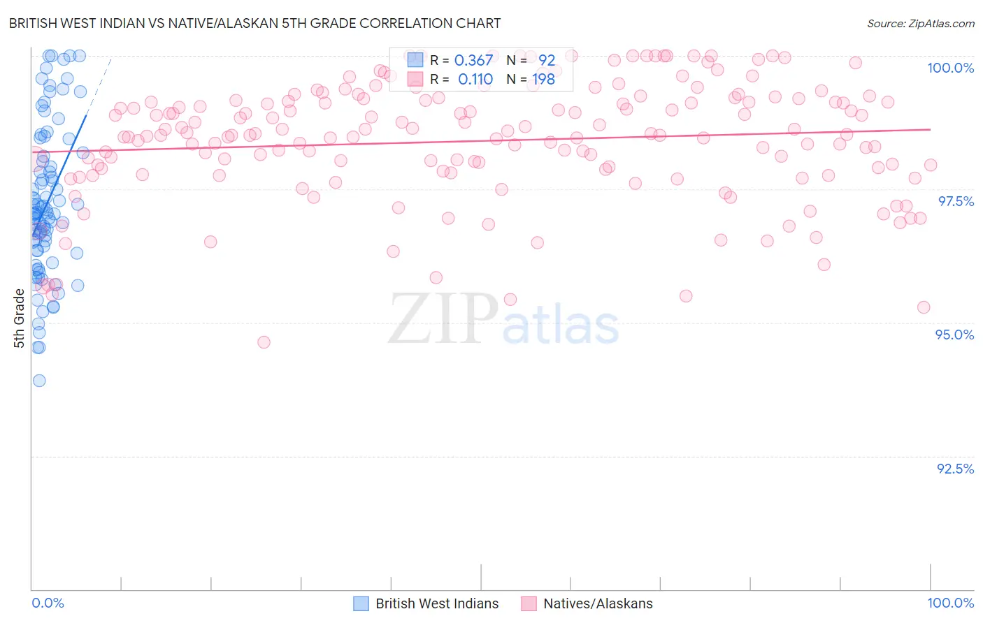 British West Indian vs Native/Alaskan 5th Grade Correlation Chart
