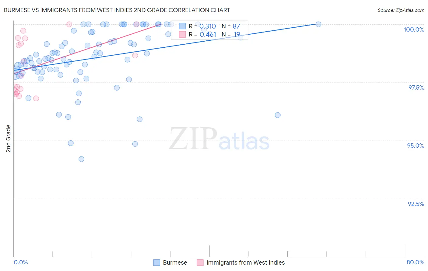 Burmese vs Immigrants from West Indies 2nd Grade Correlation Chart