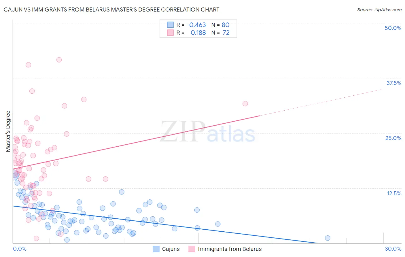 Cajun vs Immigrants from Belarus Master's Degree Correlation Chart