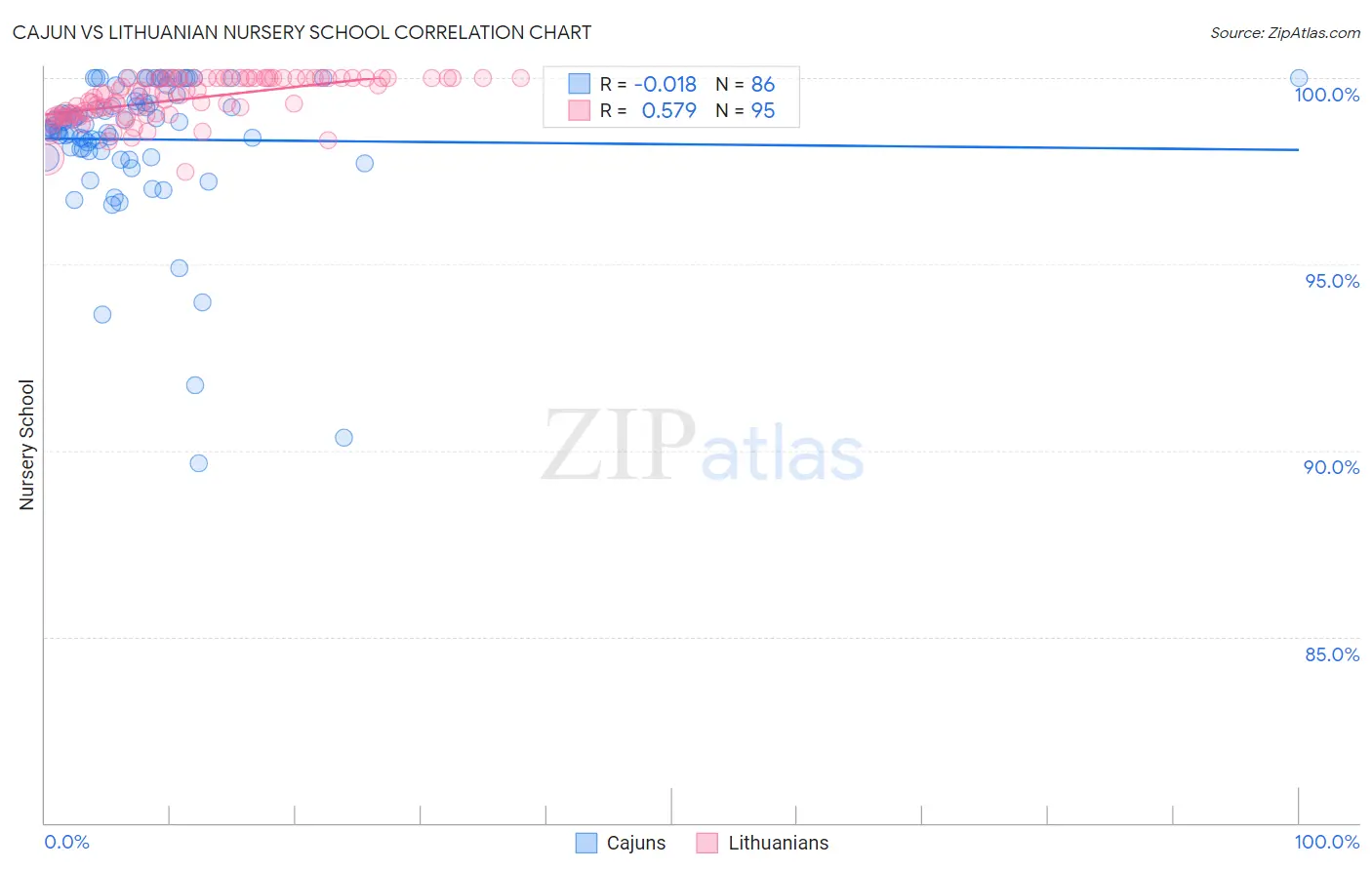 Cajun vs Lithuanian Nursery School Correlation Chart