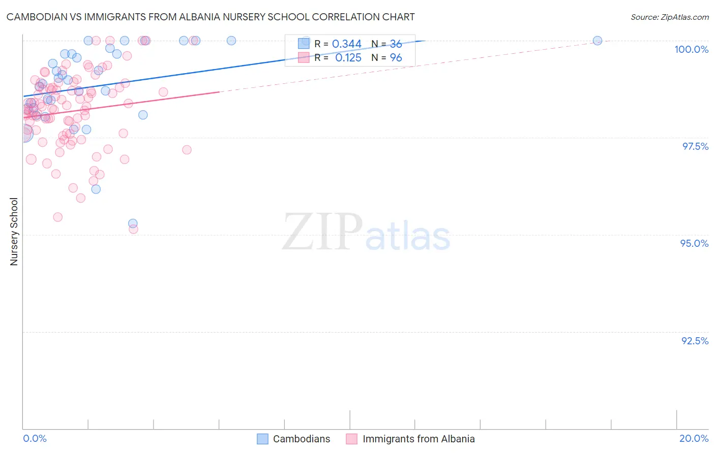 Cambodian vs Immigrants from Albania Nursery School Correlation Chart