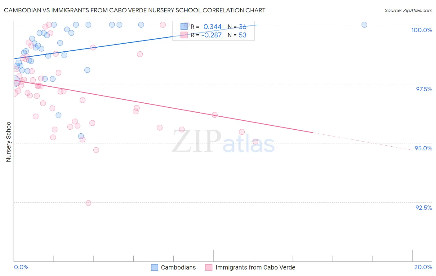 Cambodian vs Immigrants from Cabo Verde Nursery School Correlation Chart