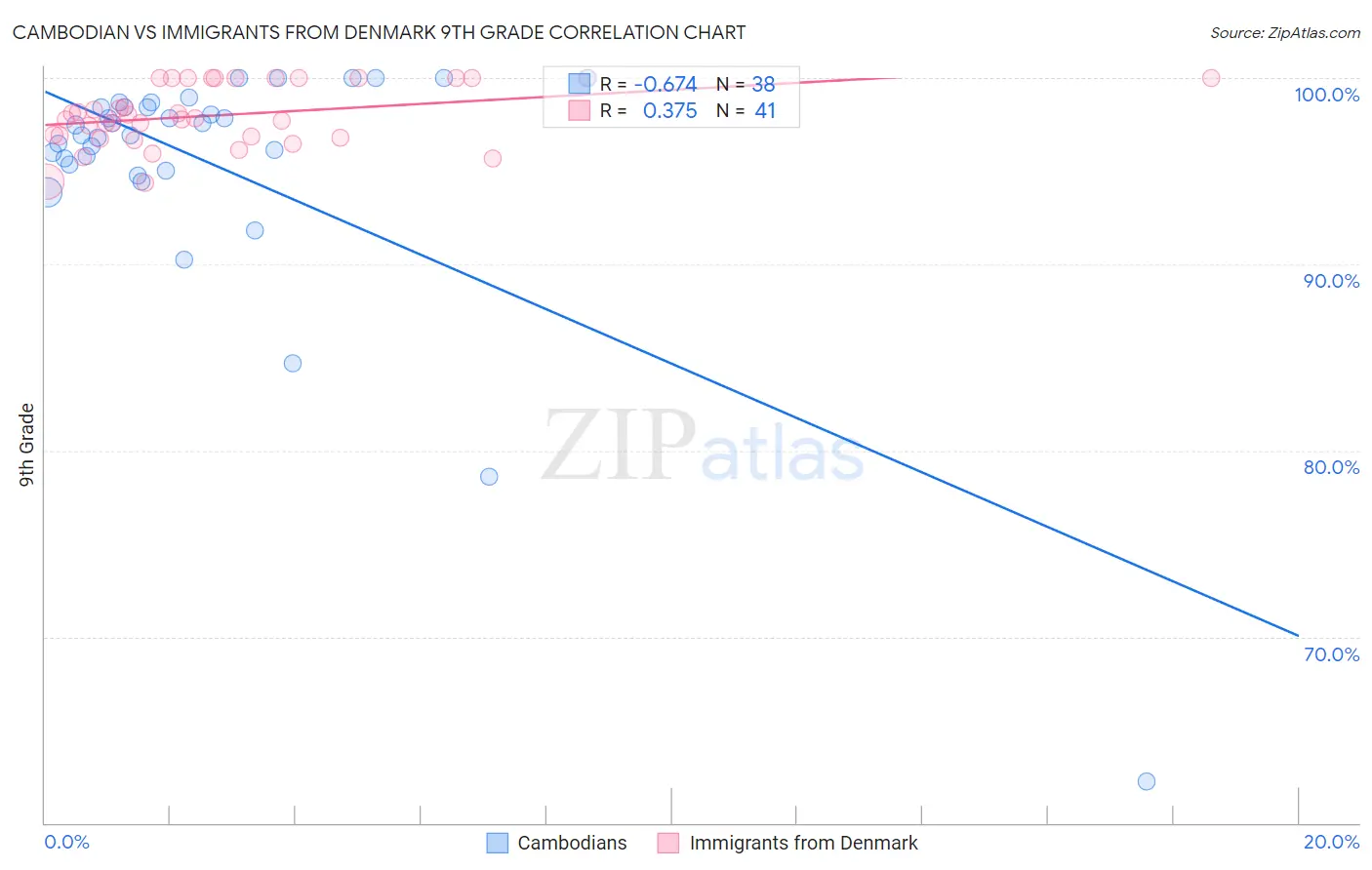 Cambodian vs Immigrants from Denmark 9th Grade Correlation Chart