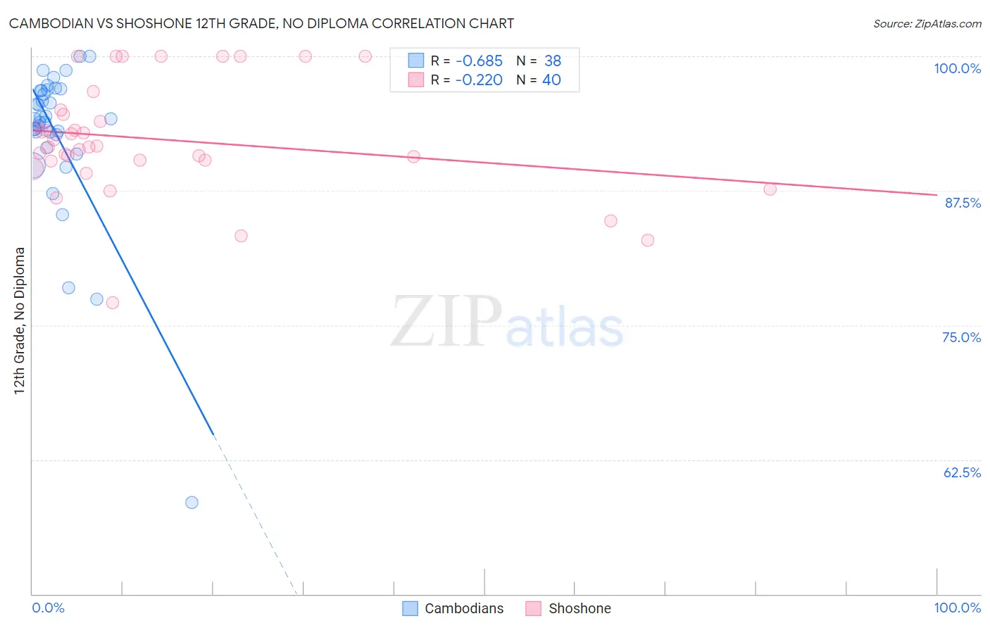 Cambodian vs Shoshone 12th Grade, No Diploma Correlation Chart