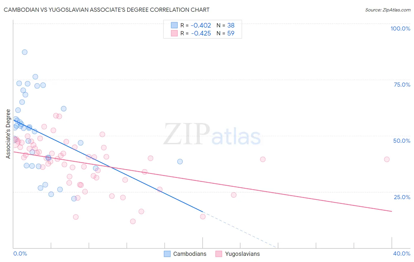 Cambodian vs Yugoslavian Associate's Degree Correlation Chart