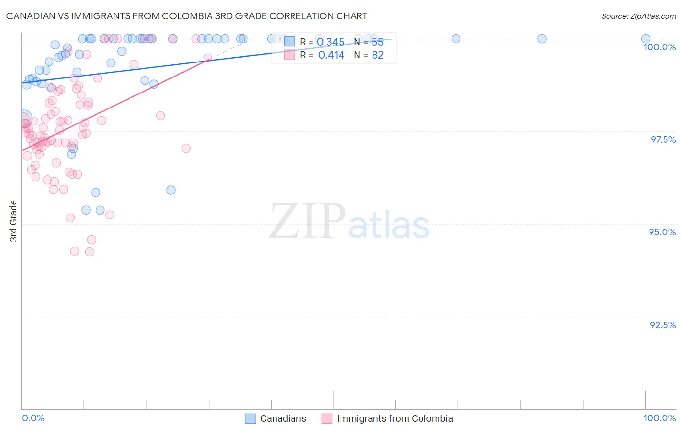 Canadian vs Immigrants from Colombia 3rd Grade Correlation Chart
