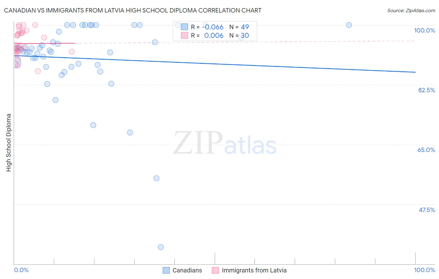 Canadian vs Immigrants from Latvia High School Diploma Correlation Chart
