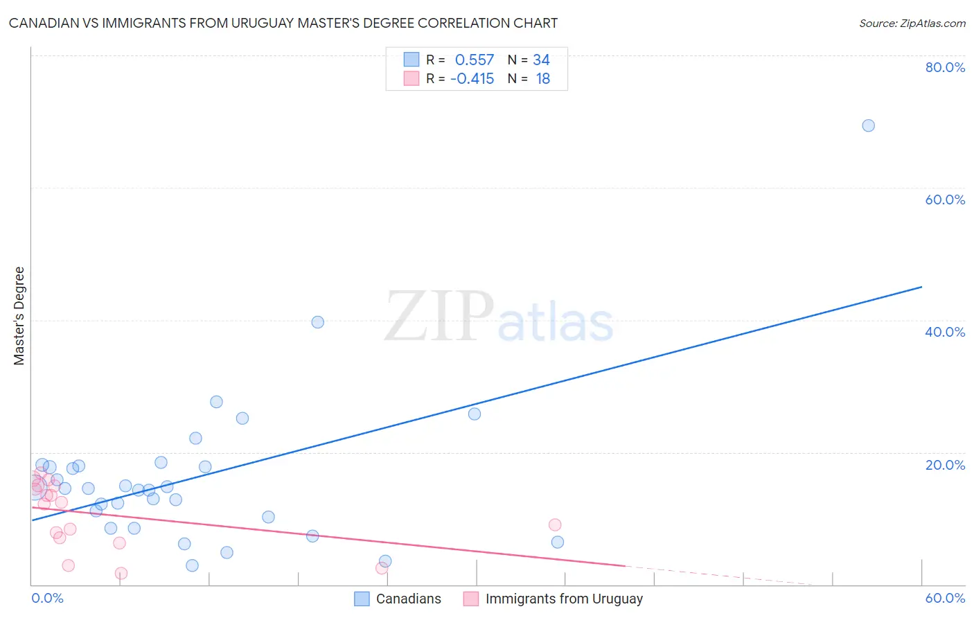 Canadian vs Immigrants from Uruguay Master's Degree Correlation Chart