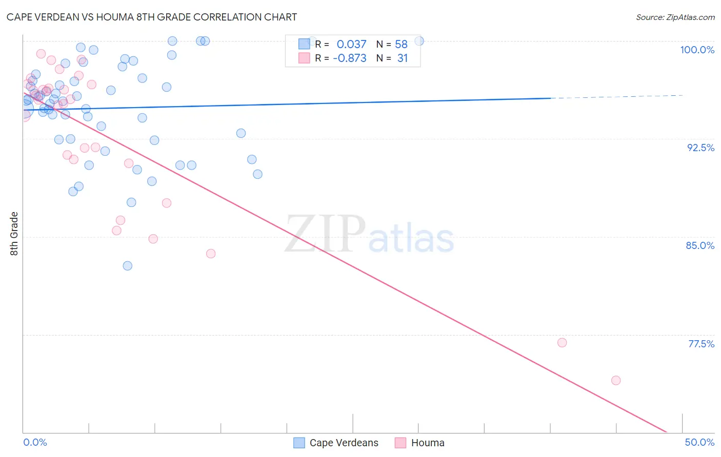 Cape Verdean vs Houma 8th Grade Correlation Chart