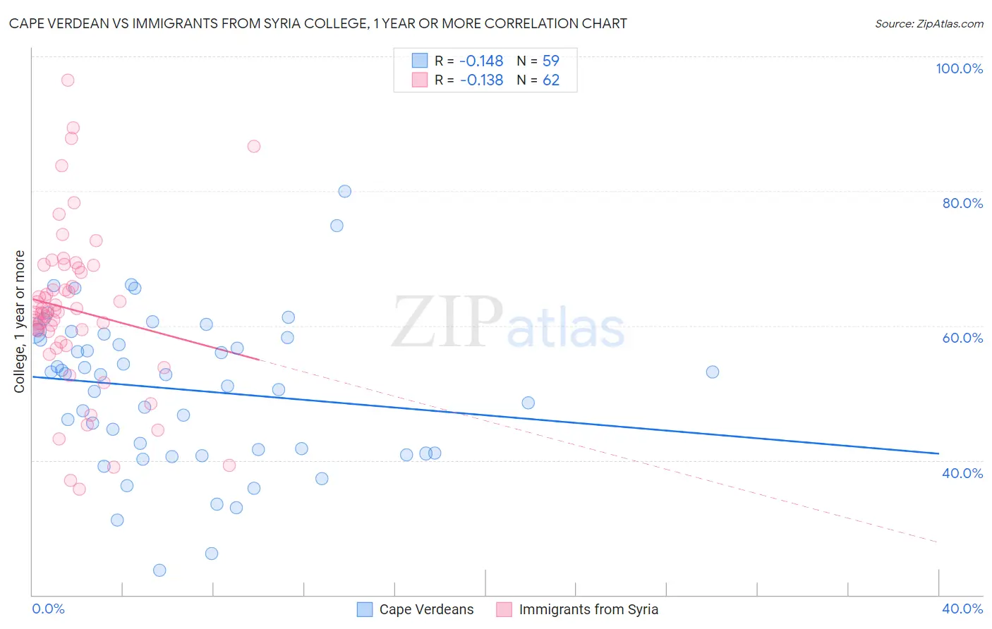 Cape Verdean vs Immigrants from Syria College, 1 year or more Correlation Chart