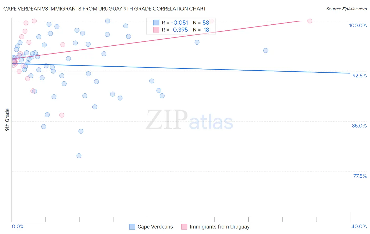 Cape Verdean vs Immigrants from Uruguay 9th Grade Correlation Chart