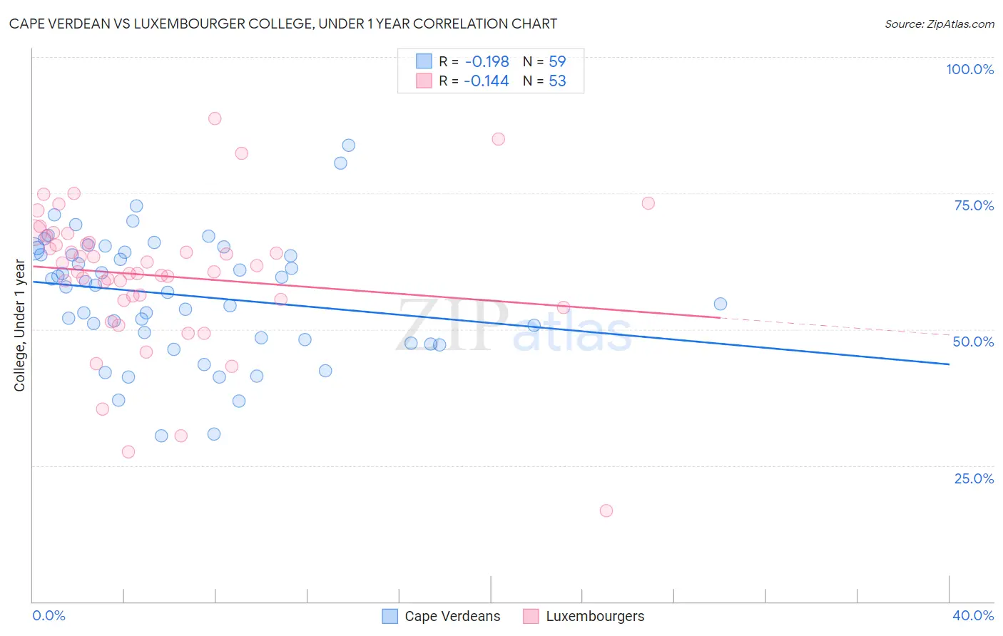 Cape Verdean vs Luxembourger College, Under 1 year Correlation Chart