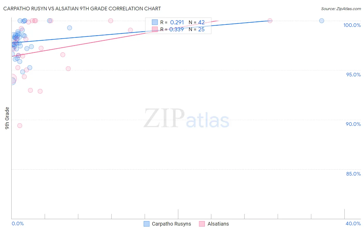 Carpatho Rusyn vs Alsatian 9th Grade Correlation Chart