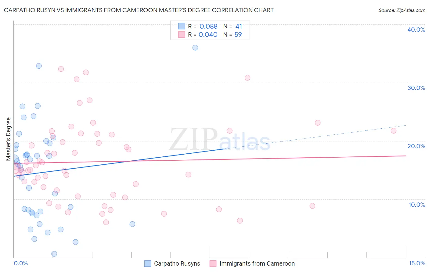 Carpatho Rusyn vs Immigrants from Cameroon Master's Degree Correlation Chart
