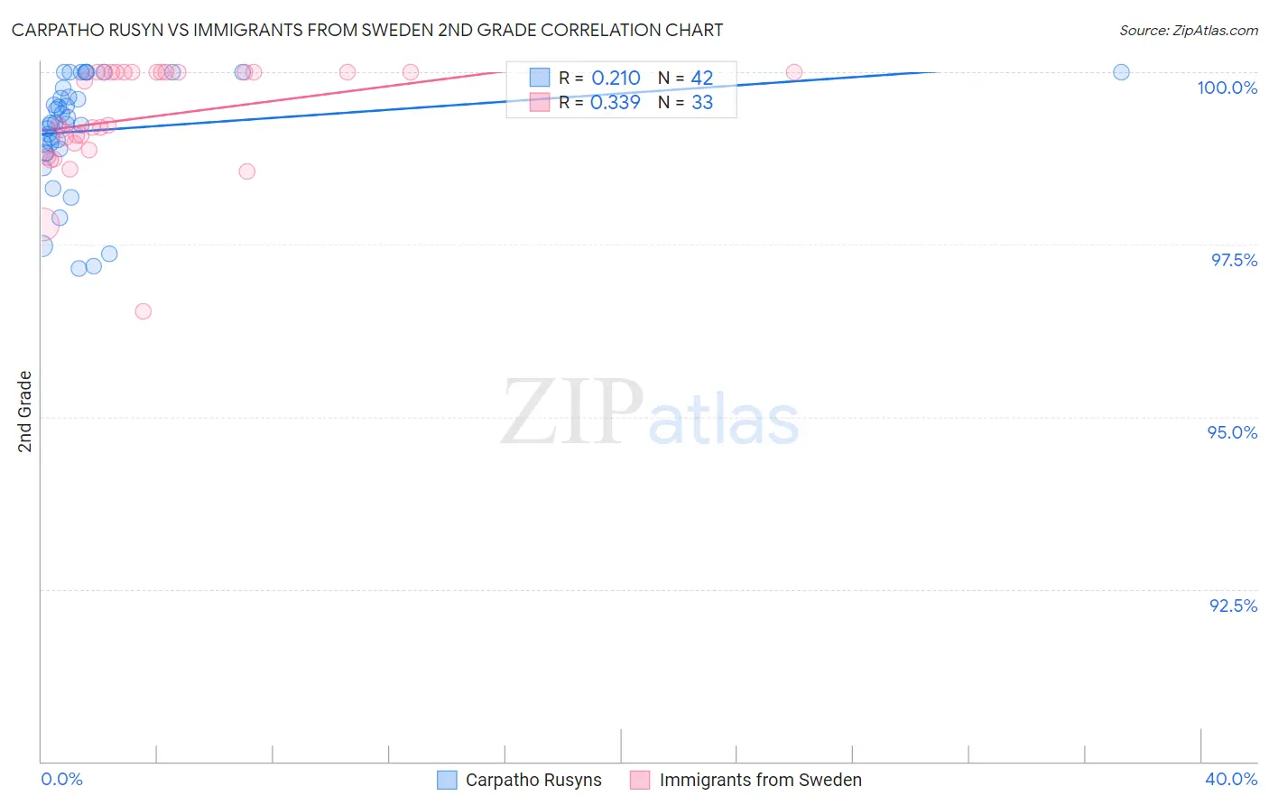 Carpatho Rusyn vs Immigrants from Sweden 2nd Grade Correlation Chart