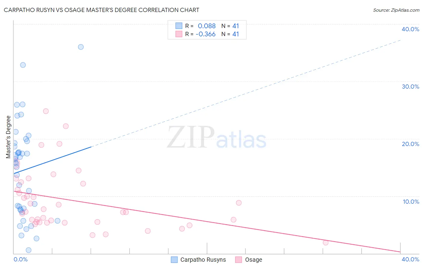 Carpatho Rusyn vs Osage Master's Degree Correlation Chart