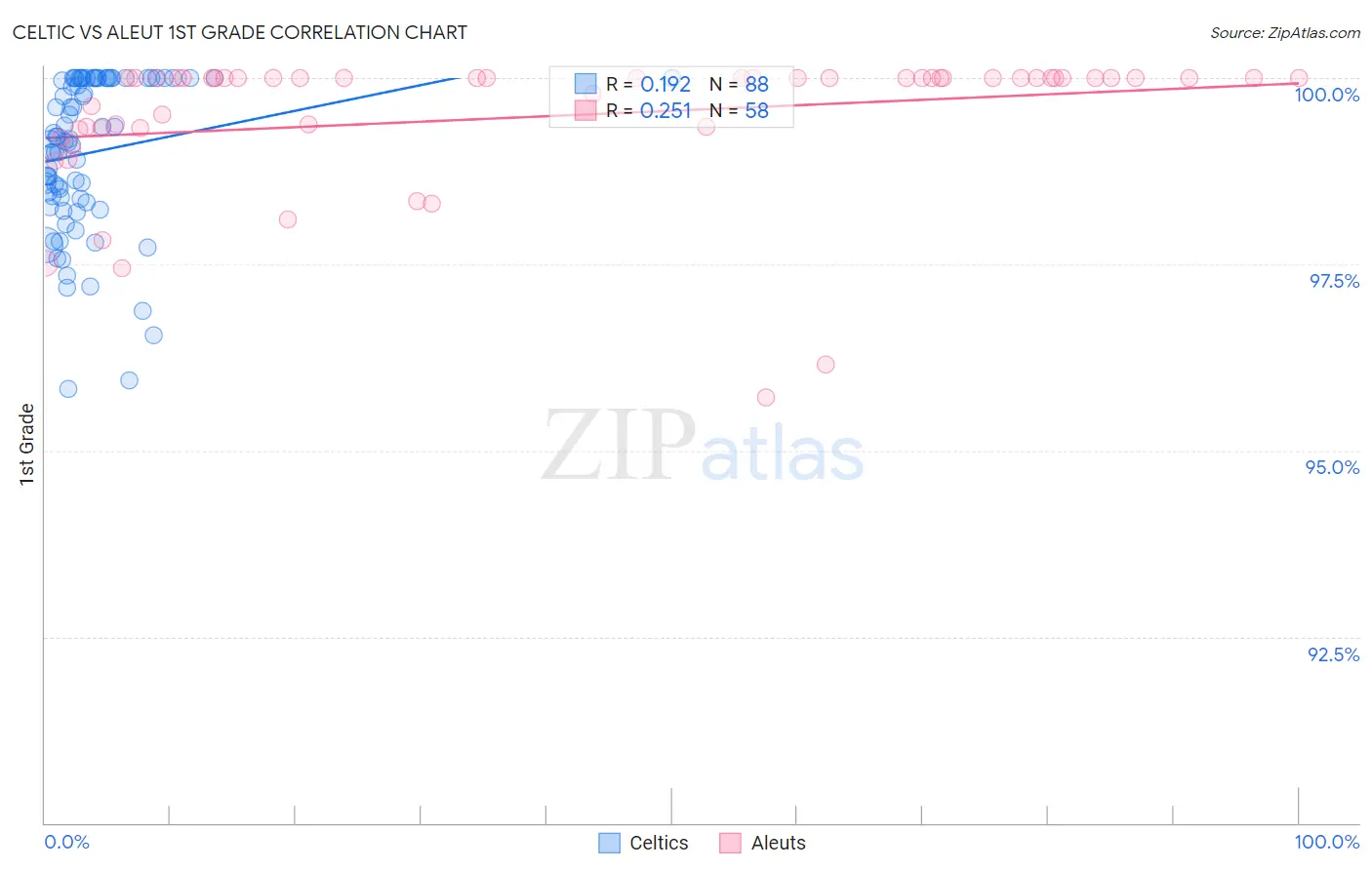 The statistical analysis conducted on geographies consisting of 168,875,705 people shows a poor positive correlation between the proportion of Celtics and percentage of population with at least 1st grade education in the United States with a correlation coefficient (R) of 0.192 and weighted average of 98.4%. Similarly, the statistical analysis conducted on geographies consisting of 61,781,127 people shows a weak positive correlation between the proportion of Aleuts and percentage of population with at least 1st grade education in the United States with a correlation coefficient (R) of 0.251 and weighted average of 98.6%, a difference of 0.22%.