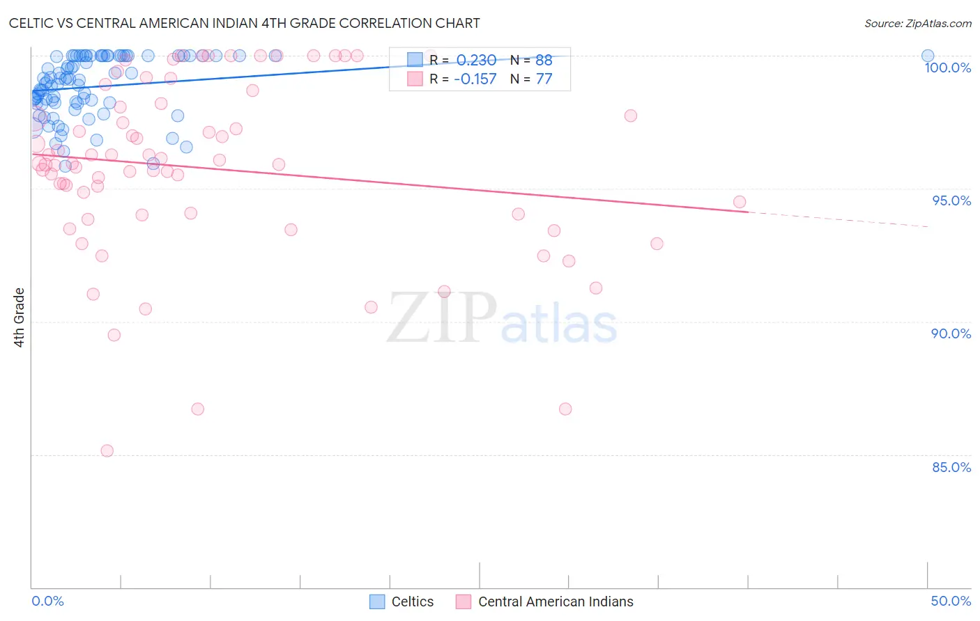 Celtic vs Central American Indian 4th Grade Correlation Chart