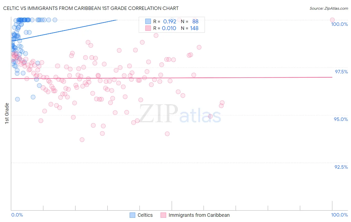 Celtic vs Immigrants from Caribbean 1st Grade Correlation Chart
