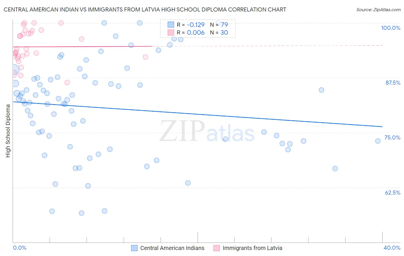Central American Indian vs Immigrants from Latvia High School Diploma Correlation Chart