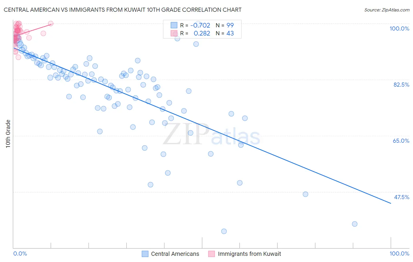 Central American vs Immigrants from Kuwait 10th Grade Correlation Chart