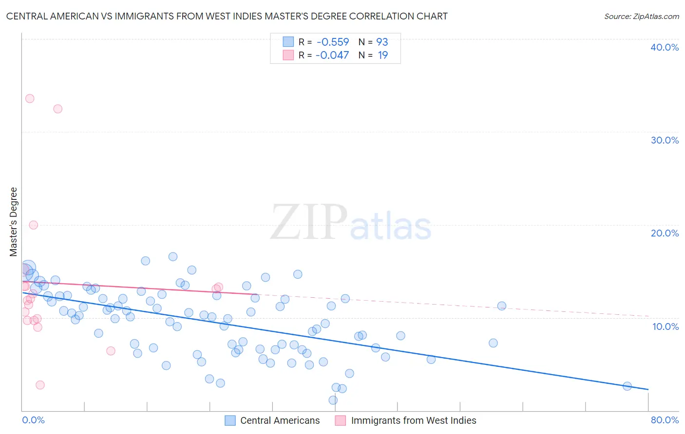 Central American vs Immigrants from West Indies Master's Degree Correlation Chart