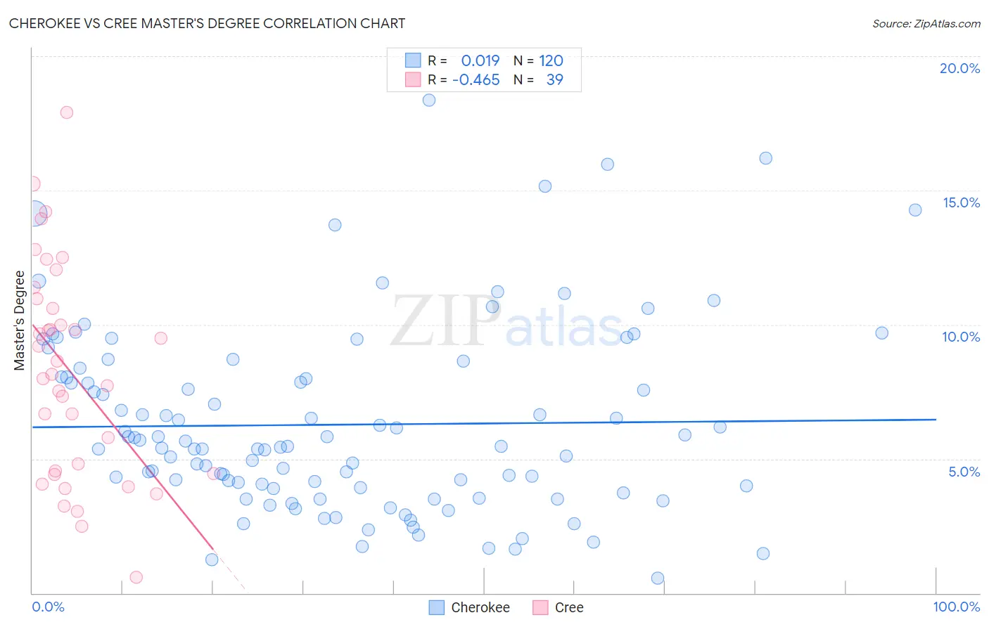 Cherokee vs Cree Master's Degree Correlation Chart
