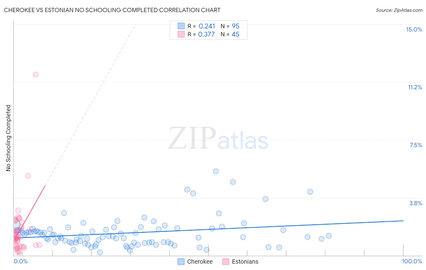 Cherokee vs Estonian No Schooling Completed Correlation Chart