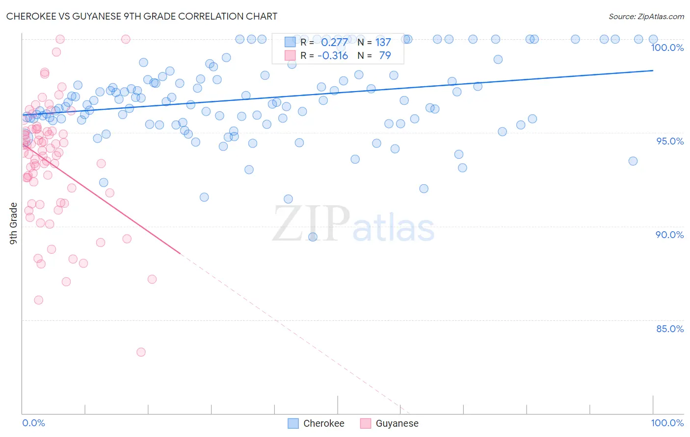 Cherokee vs Guyanese 9th Grade Correlation Chart