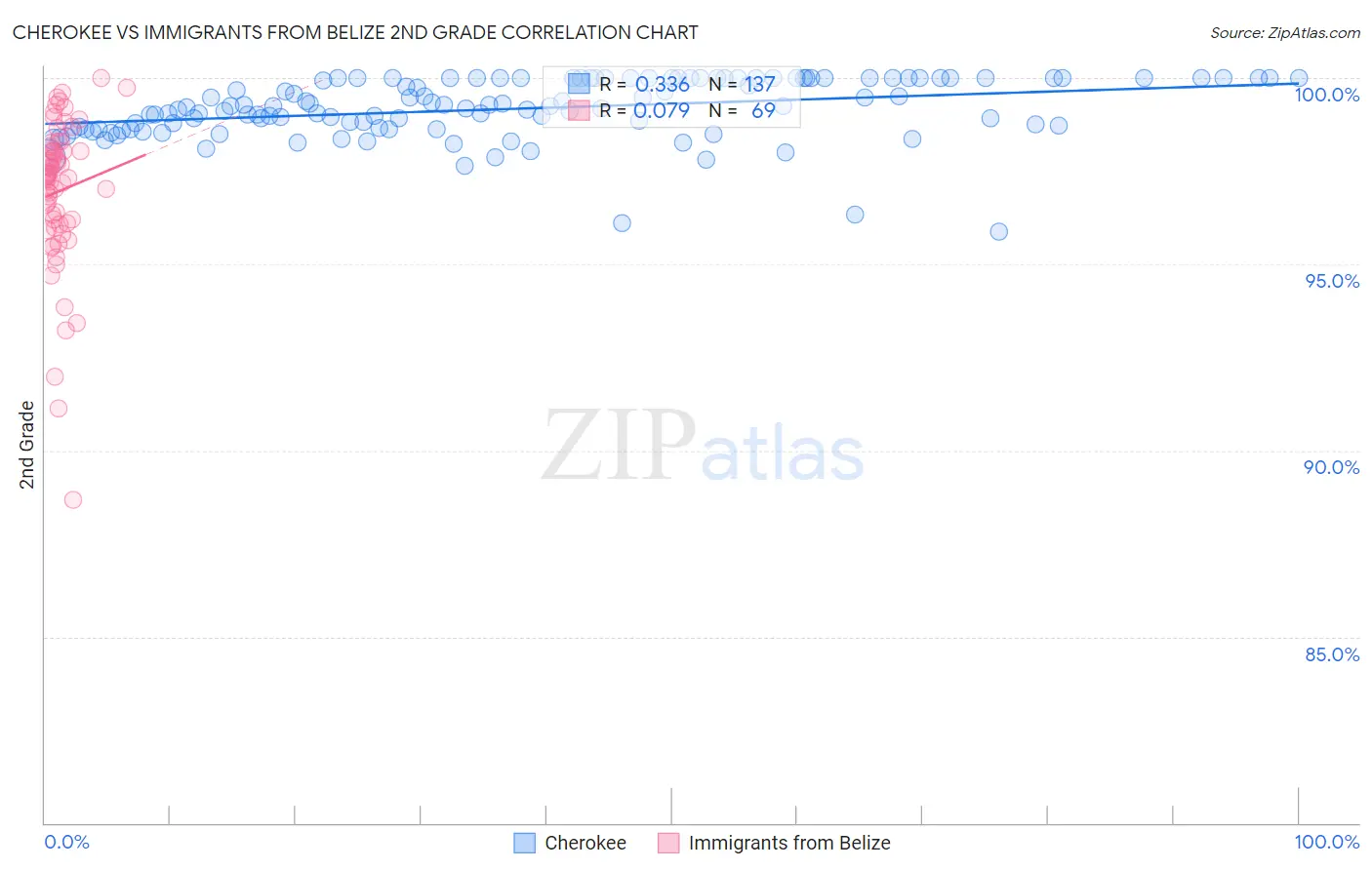 Cherokee vs Immigrants from Belize 2nd Grade Correlation Chart