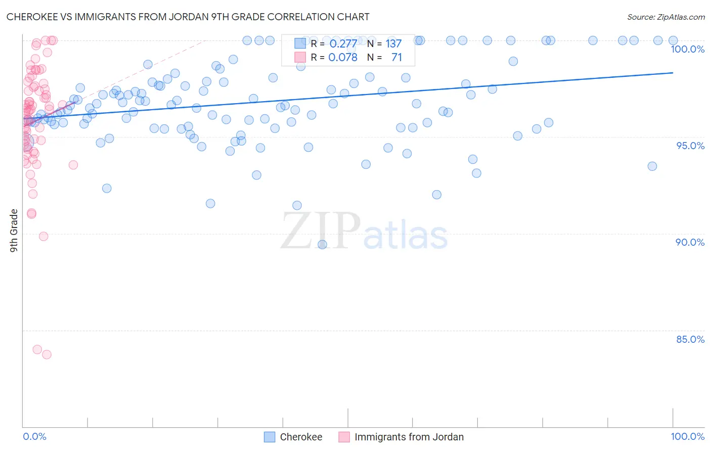 Cherokee vs Immigrants from Jordan 9th Grade Correlation Chart