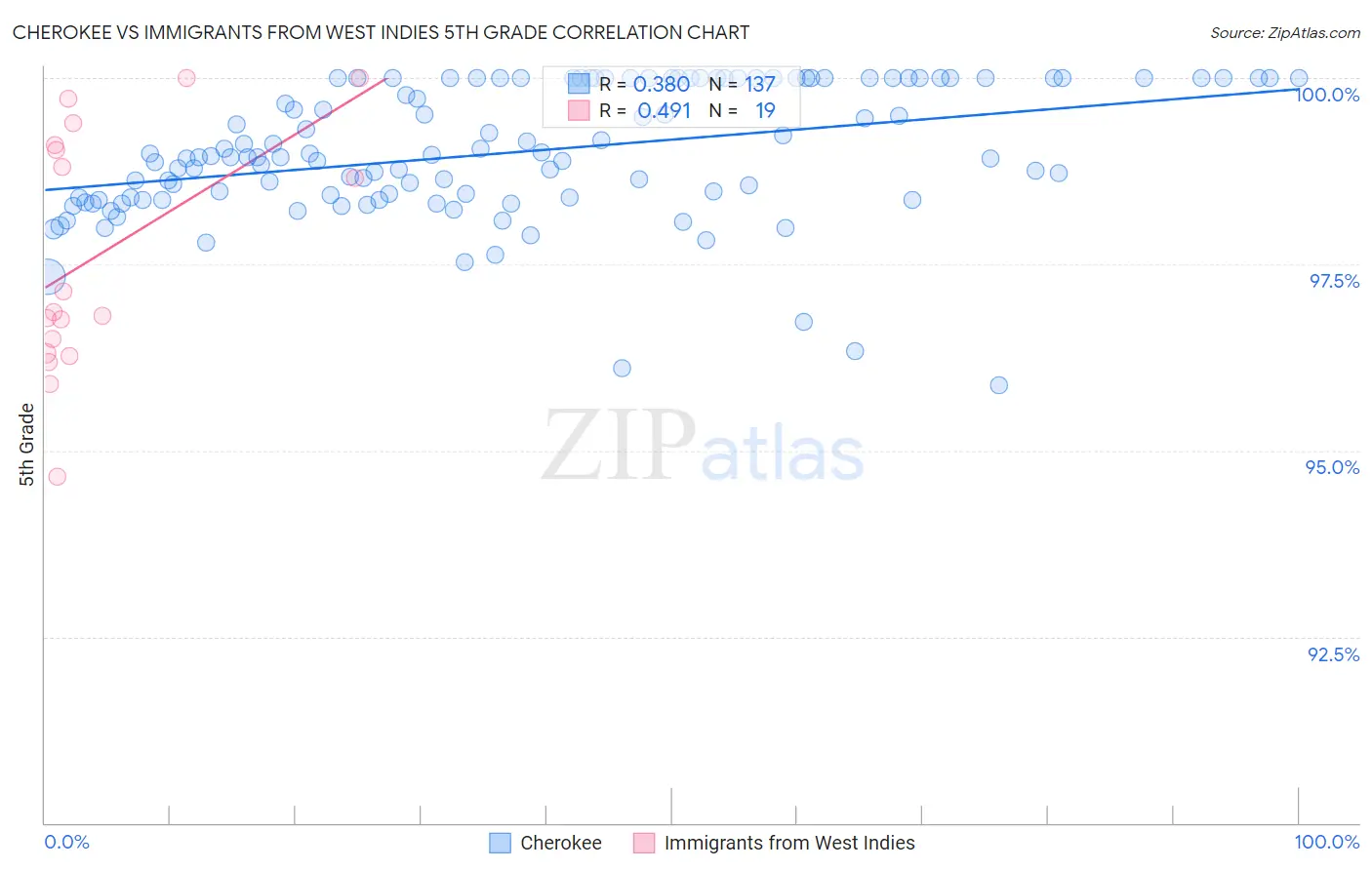 Cherokee vs Immigrants from West Indies 5th Grade Correlation Chart
