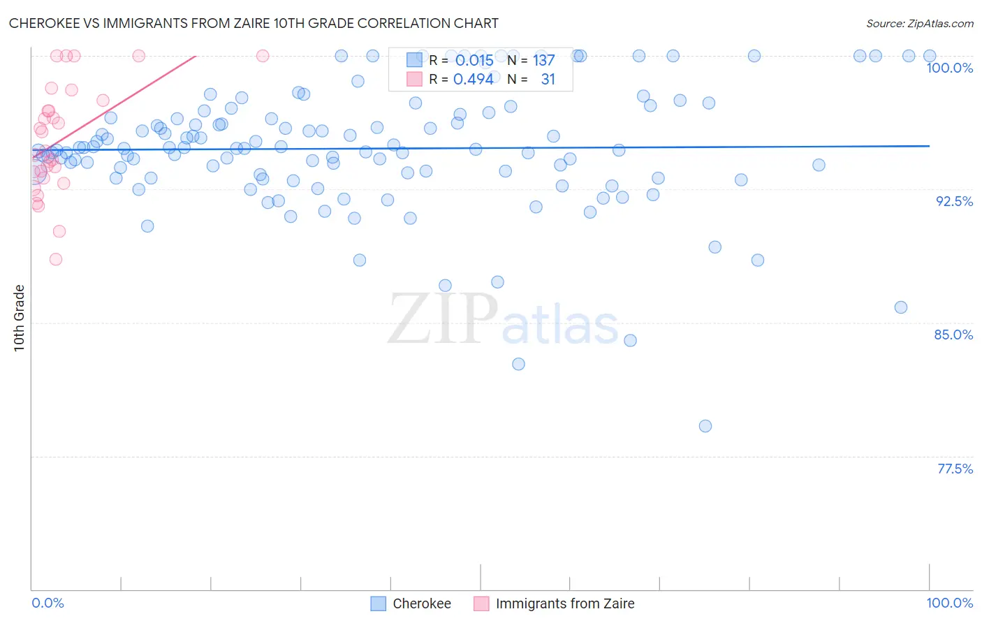 Cherokee vs Immigrants from Zaire 10th Grade Correlation Chart