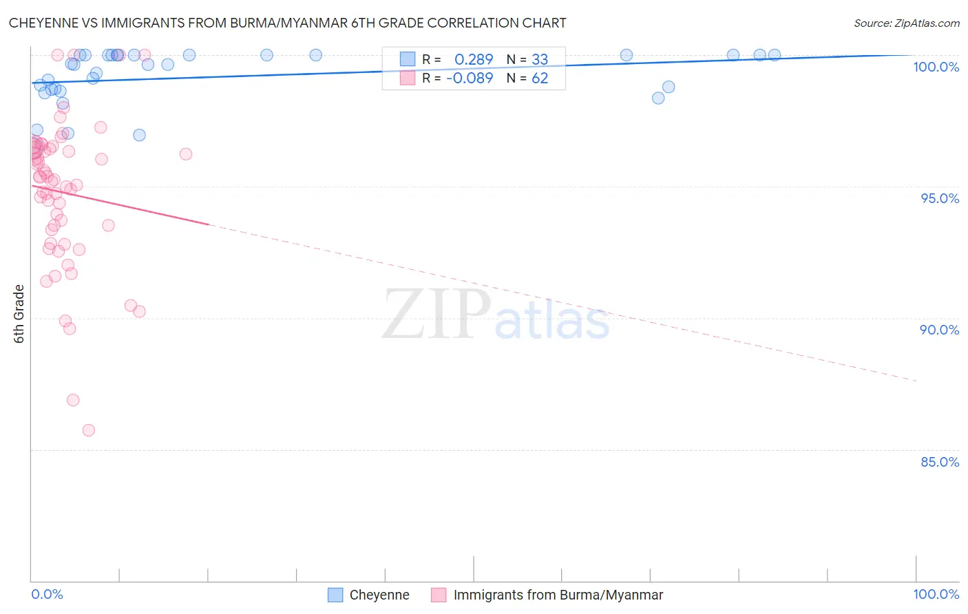 Cheyenne vs Immigrants from Burma/Myanmar 6th Grade Correlation Chart